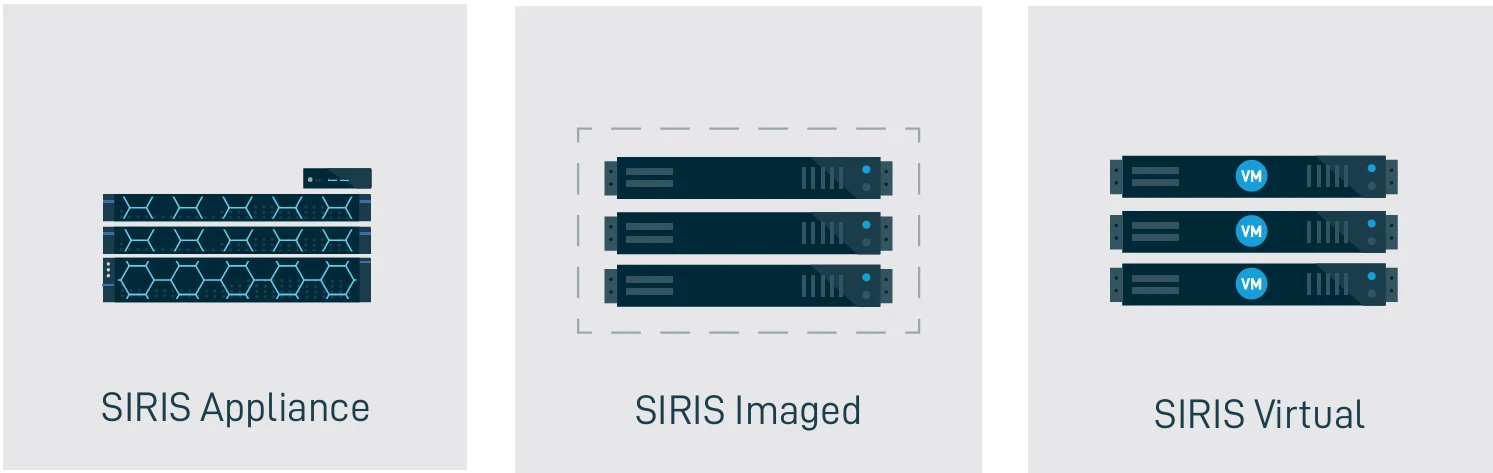 SIRIS can be easily deployed as an all-in-one, secure SIRIS appliance, or be provisioned to existing hardware as a VM or an image.