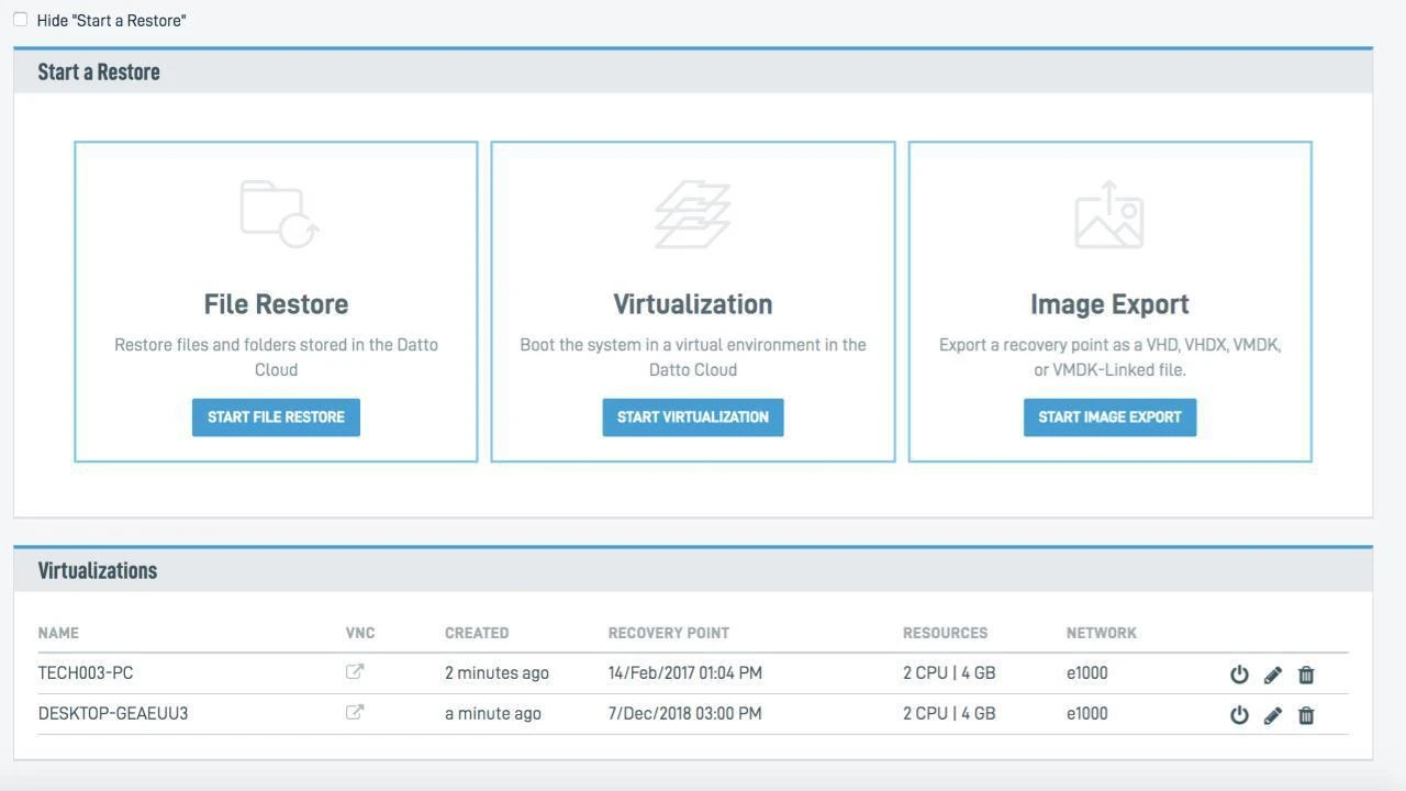 Given the criticality of restore, Datto further simplifies recovery with the Recovery Launchpad which is accessed from the secure backup portal.