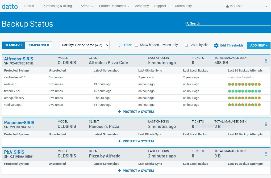 Datto Backup Portal gives MSPs a centralized, client-wide view.